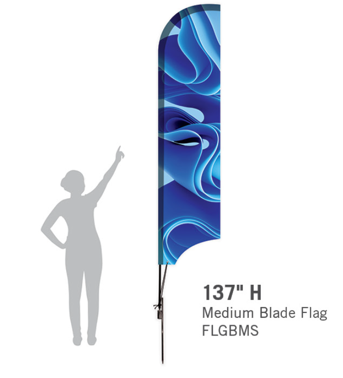 - Double-sided flags are tri-layered and include a blockout center