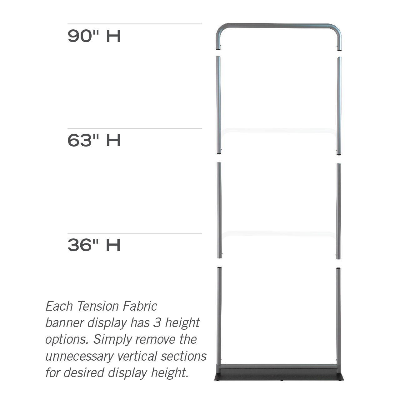 - Available Heights: 90", 63", 36"