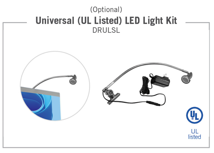 - 15" model: Adjustable-height pole - viewable graphic 15"w x 27.25-35.5"h